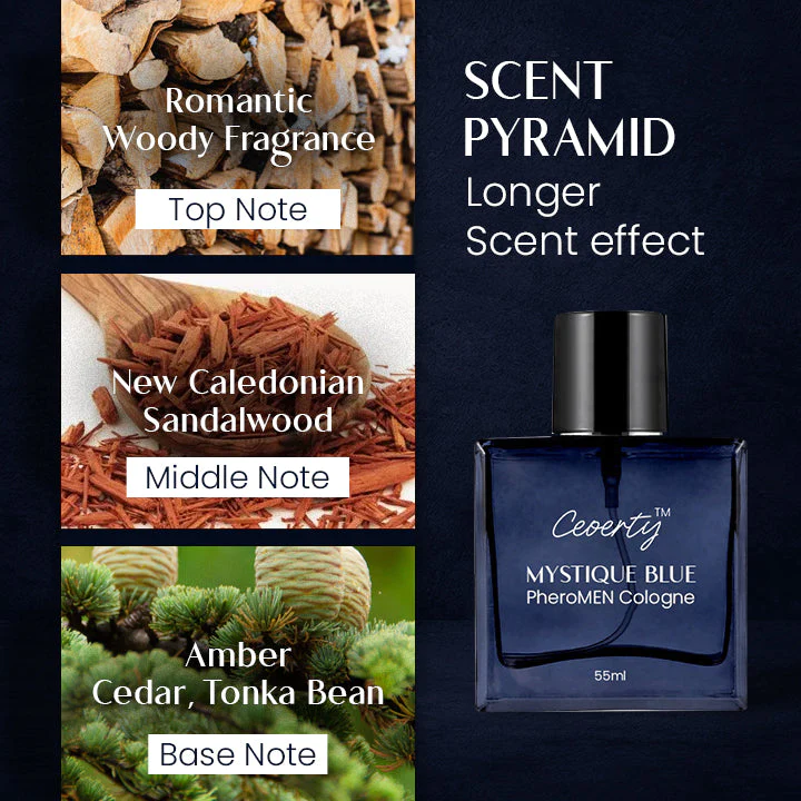 Ceoerty™ Mystique Blue PheroMEN Cologne uses a unique fragrance formula and ionic bonding technology to enhance the scent and effectiveness of your pheromones. Its aroma molecules stimulate the olfactory nerve, create a unique body scent and help you attract and seduce women more effectively.
