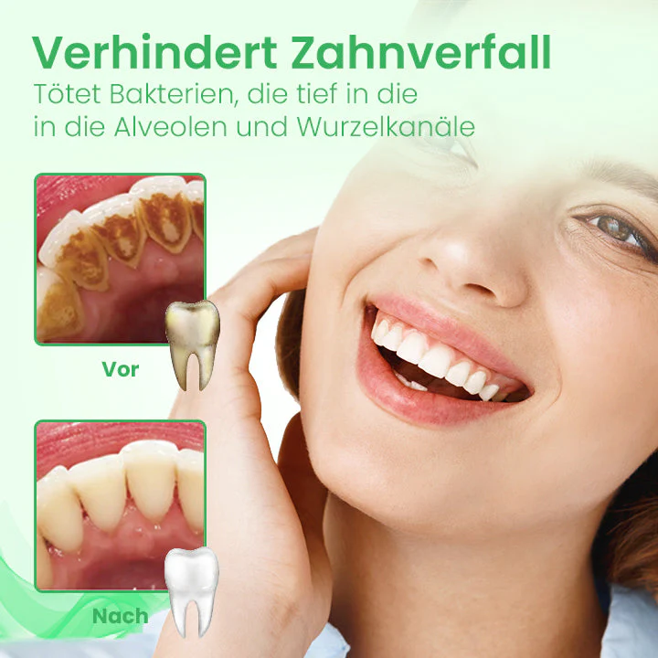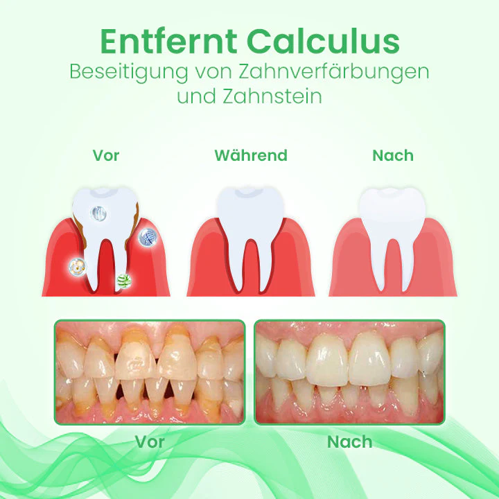 Zahnstein ist verkalkte Plaque, die das Zahnfleisch entzündet, was zu Knochenverlust, lockeren Zähnen, Zahnempfindlichkeit usw. führen kann. Ceoerty™ OralCure kann helfen, Plaque zu beseitigen und hartnäckigen Zahnstein zu entfernen, damit Ihre Zähne wieder weiß und gesund werden.