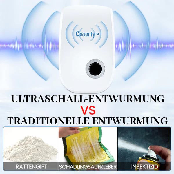 Wir stellen vor: Ceoerty™ PestOFF Ultraschall-Schädlingsvertreiber- Ihre ultimative Lösung für ein schädlingsfreies Zuhause! Verabschieden Sie sich von schädlichen Chemikalien und begrüßen Sie eine schädlingsfreie, umweltfreundliche Umgebung.