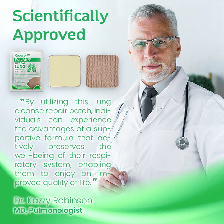 “By utilizing this lung cleanse repair patch, individuals can experience the advantages of a supportive formula that actively preserves the well-being of their respiratory system, enabling them to enjoy an improved quality of life.” – Dr. Kazzy Robinson, MD, Pulmonologist