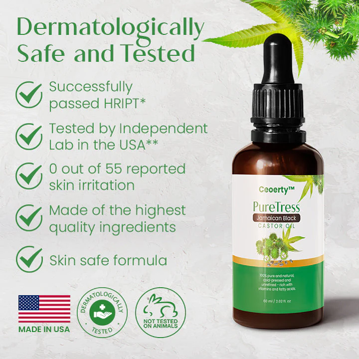 Ceoerty™ PureTress makes use of the powerful and popular natural remedy, Jamaican Black Castor Oil. The oil is 100% pure and natural, cold-pressed and unrefined – rich with vitamins and fatty acids. This versatile oil has been used for generations to address various hair concerns, such as promoting hair growth, boosting scalp health, and stimulating dormant hair follicles. Its effectiveness and versatility have made it a trusted staple in hair care and beauty routines worldwide.