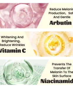 First, it inhibits the production of melanin. Potent ingredients like arbutin and vitamin C work by suppressing the activity of tyrosinase, thereby inhibiting the formation of melanin. This reduces the melanin content within skin cells, preventing and improving skin pigment deposition, and decreasing dark spots. Secondly, it stops the transfer of melanin. Niacinamide, an ingredient in the product, acts to block the transfer of melanin to skin cells, keeping them healthy and vibrant.