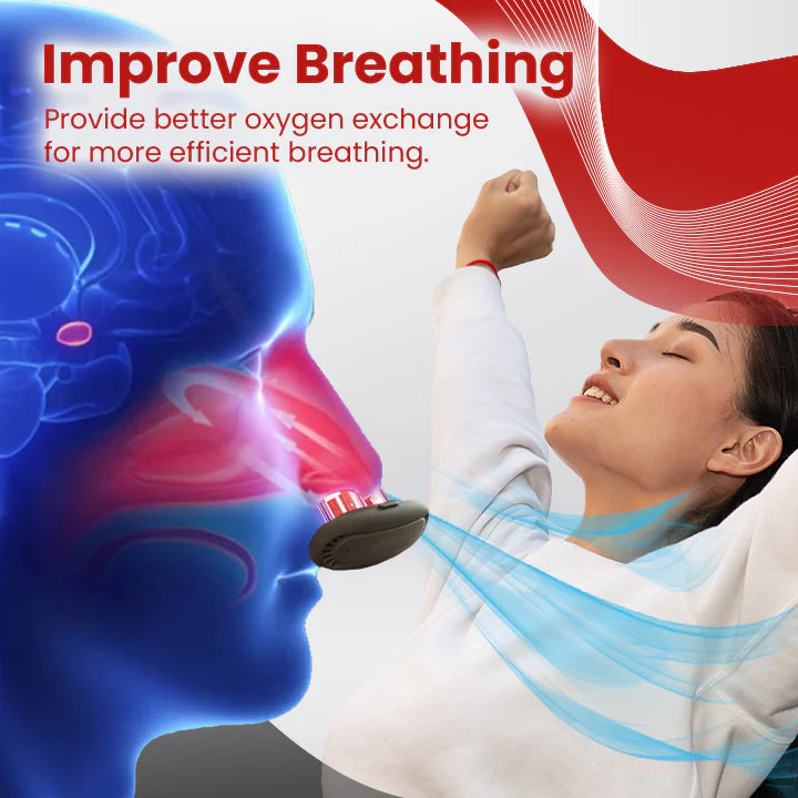 Improve breathing: By addressing various respiratory conditions that may cause breathing difficulty or discomfort, the device uses low-dose red light therapy, which has been shown to be beneficial for respiratory health; such as reducing inflammation, eliminating nasal congestion and providing better oxygen exchange for more efficient breathing.