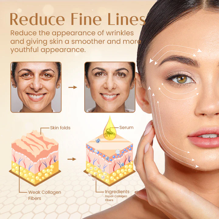 1.Scorpion venom peptide: As the main active ingredient, it slows down wrinkle formation, making the skin appear smoother and younger.