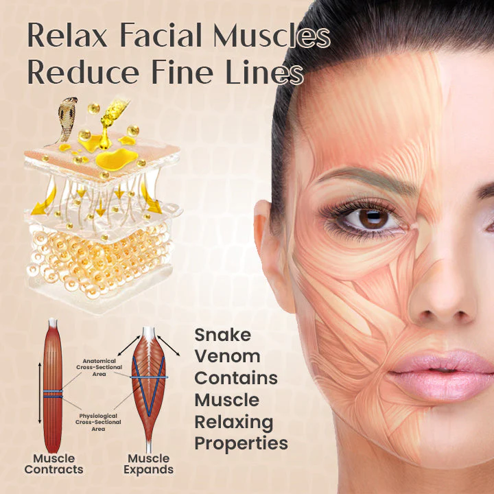 Repetitive facial movements contribute to lines and wrinkles, especially around the eyes, forehead, and mouth, because they lead to the breakdown of collagen and elastin fibers in the skin. Over time, this process can lead to the development of visible wrinkles. Ceoerty™ YouthLuxe is enriched with proteins and peptides recognized for their muscle-relaxing properties. By minimizing the repetitive expansion and contraction, our serum aims to potentially diminish the appearance of wrinkles and fine lines, positioning snake venom as a non-surgical alternative to Botox.