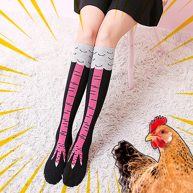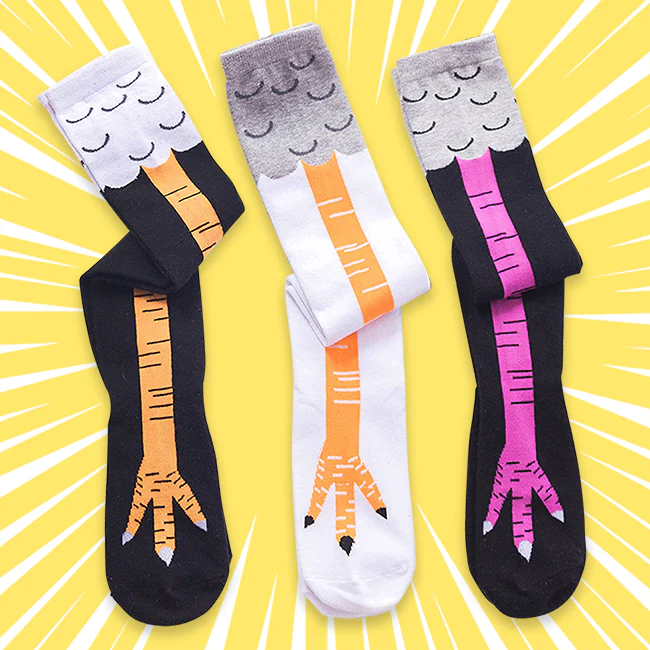 Hang out with all the poultry buddies. These obscure socks make it look like the wearer has actual chicken legs, not just skinny legs!