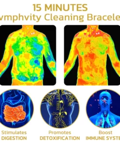 Das Armband gibt auch negative Ionen ab. Sie erhöhen die Durchlässigkeit der Zellmembran, wodurch die Aufnahme von Gewebeflüssigkeit in die Lymphgefäße erleichtert wird. Daher verhindern sie die Verstopfung des Lymphsystems.