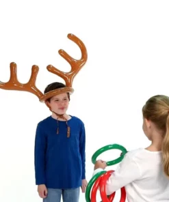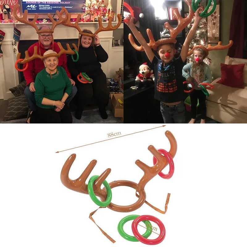 Inflatable Reindeer Antler toss game is lightweight and portable, a good interactive game, can wear this Antler on their head or toss them with your kids at Christmas party, the player who gets the most rings around the antler wins a prize!