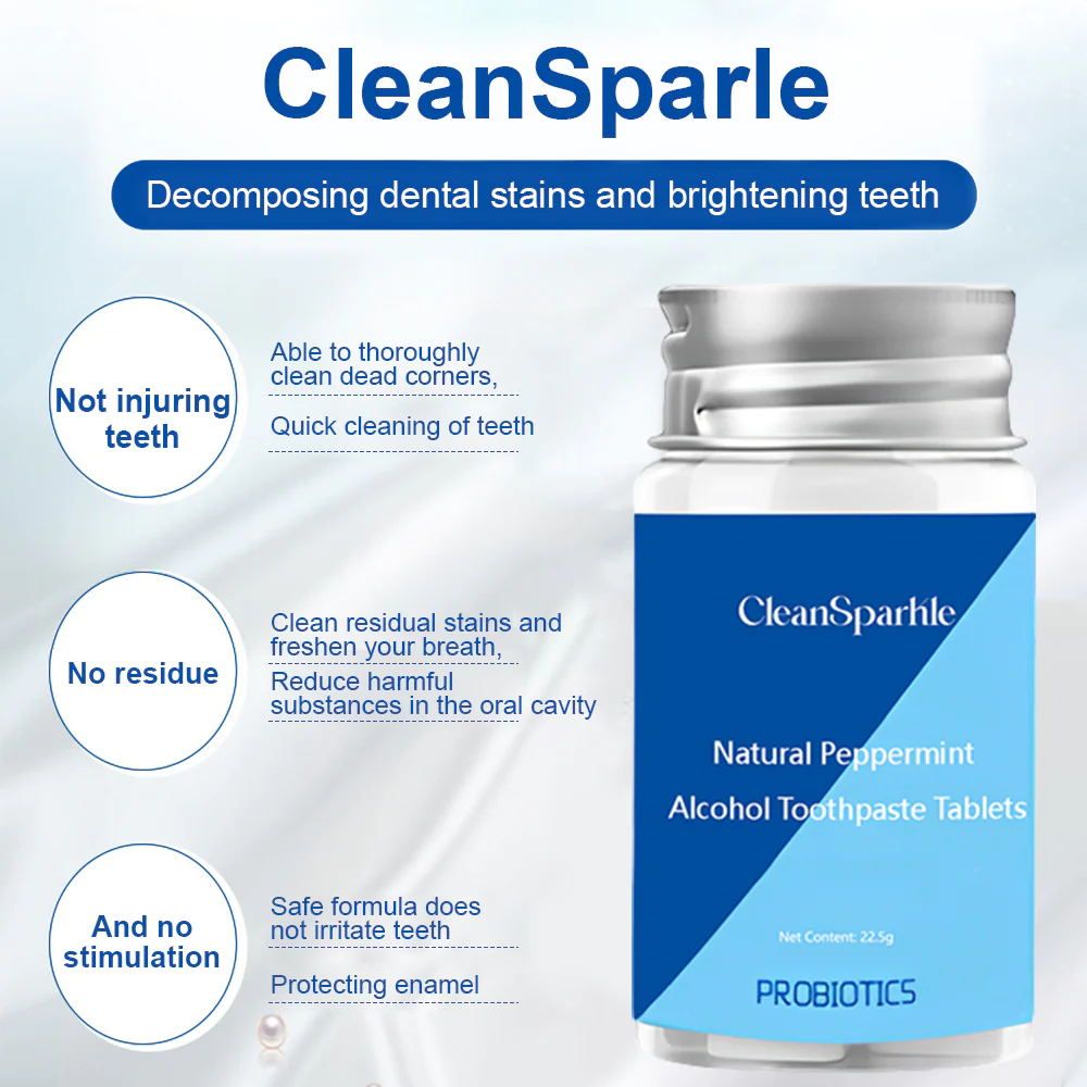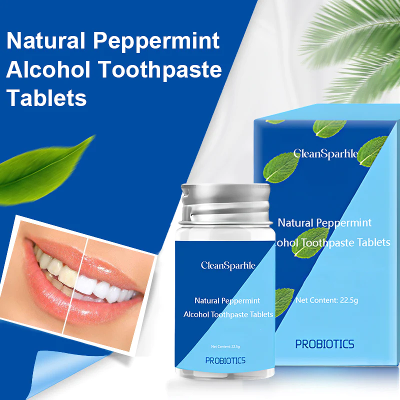 CleanSparkle™ Natural Peppermint Alcohol Toothpaste Tablets