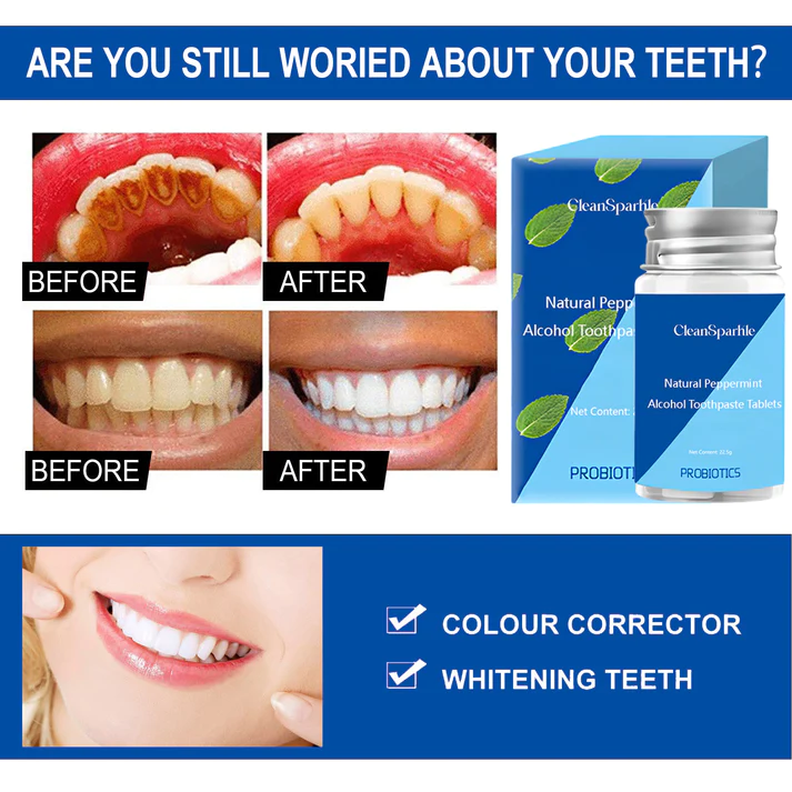 Package Includes: 1 x CleanSparkle™ Natural Peppermint Alcohol Toothpaste Tablets