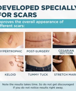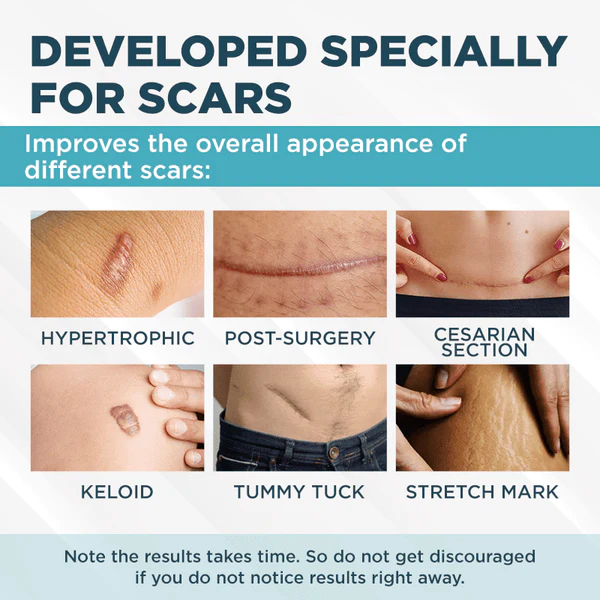Advanced Scar Gel has been clinically proven to improve the appearance of scars and stretch marks by reducing redness, minimizing discoloration, and increasing collagen production. It can 100% remove C-Section scars, tummy tuck scars, old scars, keloids, stretch marks, burn scars, and more!