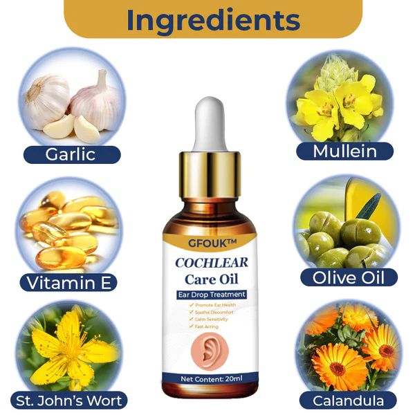 GFOUK™ Cochlear Care Oil wird verwendet, um überschüssiges Ohrenschmalz, auch Cerumen genannt, aufzuweichen und aus dem Gehörgang zu entfernen. Dies kann dazu beitragen, Hörverlust, Ohrenschmerzen und andere Probleme im Zusammenhang mit dem Ohr zu verhindern. Das Öl enthält sichere und sanfte Inhaltsstoffe, die die empfindliche Haut im Gehörgang nicht reizen können.