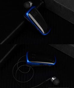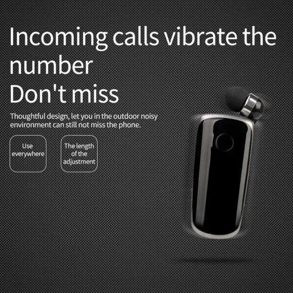 With our Retractable Bluetooth Headset with a Clip-on design, you can clip on the collar, tie, or shoulders. Also, when you do not need the earbuds, just retracted the earbud and release the pressure on the ear.