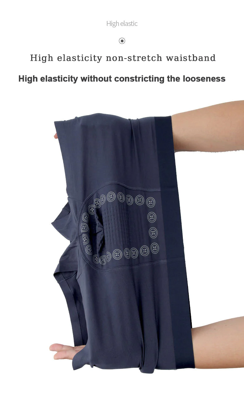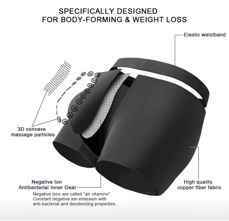 Copper Fiber Ionic Antibacterial Ice Silk Body Restorer activate more than 800 reflex points in the abdominal area. These specially designed Copper Fiber Ionic Antibacterial Ice Silk Body Restorer utilize ion therapy, far-infrared therapy, and absinthe therapy to generate energy independently, without requiring an external power source like electricity. By combining these therapeutic approaches, the shorts offer users a comprehensive massage and stimulation experience. They effectively enhance blood and lymphatic circulation, alleviate lymphedema and inflammation, and minimize fluid retention and cellulite buildup in the body.