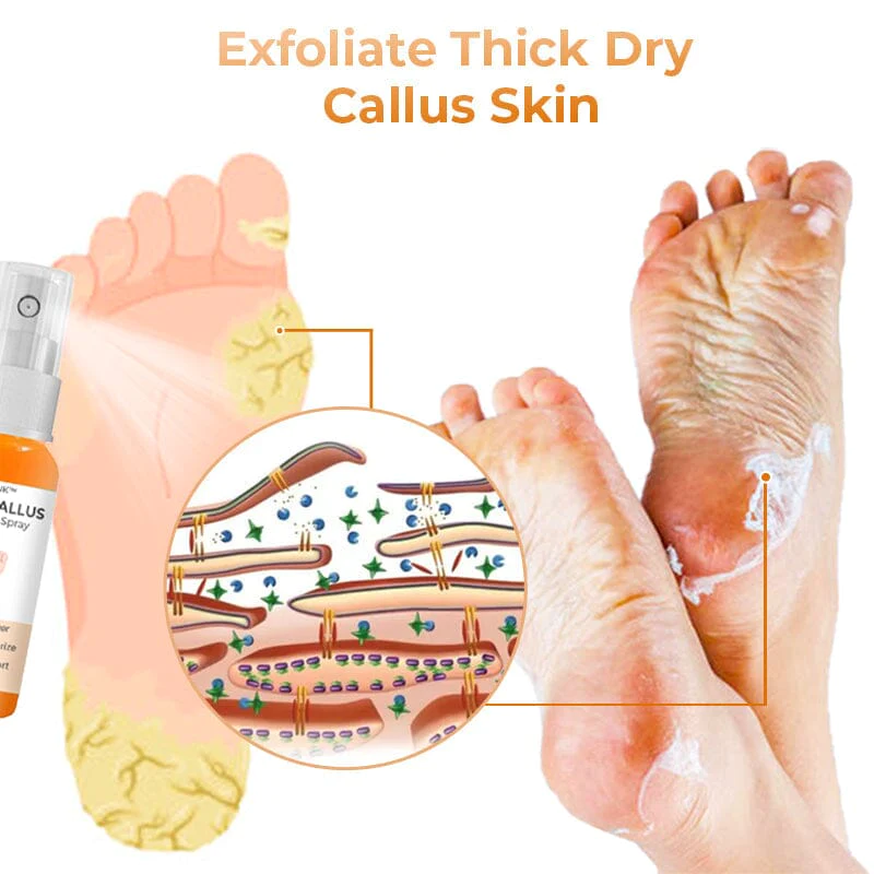 Croaie™ Foot Callus Removal Spray has the ability to break down or dissolve keratin, the protein that forms the tough outer layer of the callus. It works by penetrating the layers of the callused skin and disrupting the bonds between the dead skin cells, gradually softening and loosening the callus.