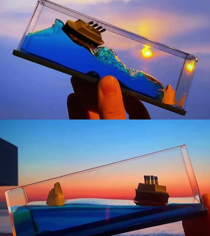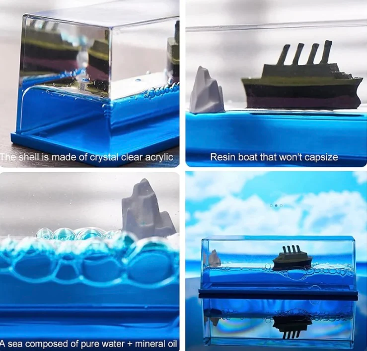 - Product material:Outer material: acrylic,Cruise ship and iceberg: resin,Liquid: mineral oil and water