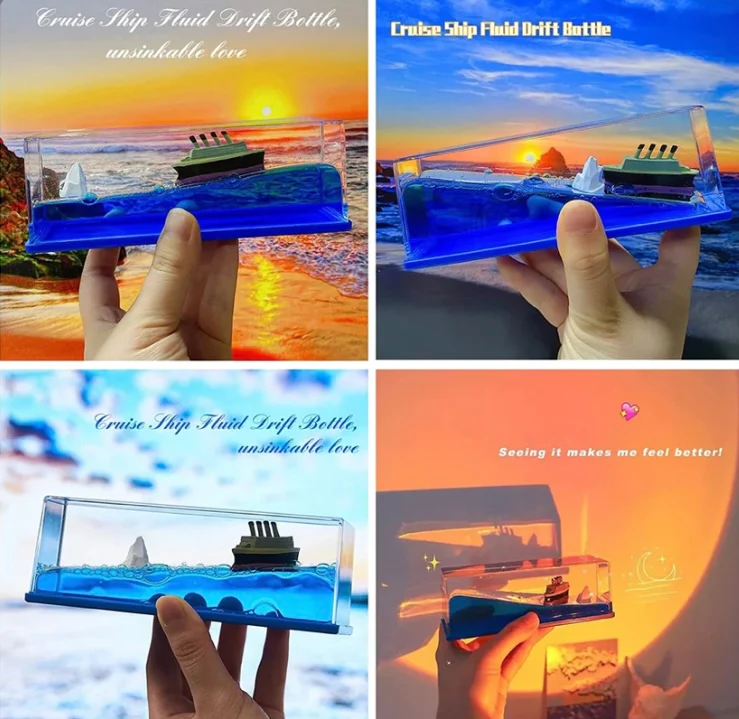 This unsinkable ship decoration symbolizes courage, when you shake this fluid drift bottle, there is a surging sea, cruise ships and icebergs float with the water, as if they are about to capsize, and eventually they will float on the water.Great Christmas gift choice.