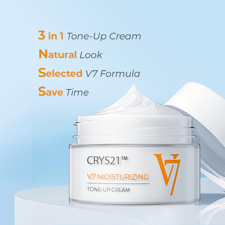 CRYS21™ V7 Moisturizing Tone-up Cream is a game-changer! Its creamy texture blends seamlessly onto the skin, providing a natural and radiant look. The moisturizing formula keeps my skin hydrated all day, while the tone-up effect evens out my complexion for a flawless finish. Highly recommended!