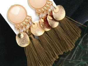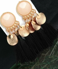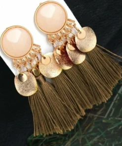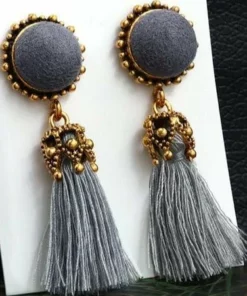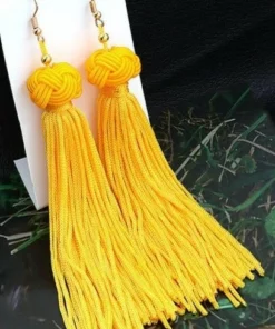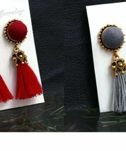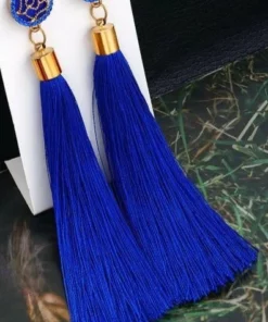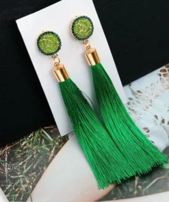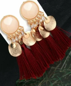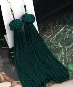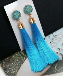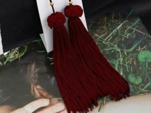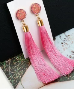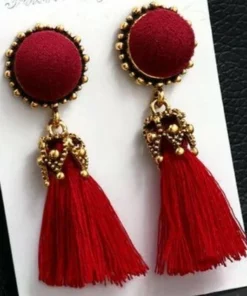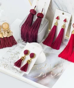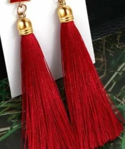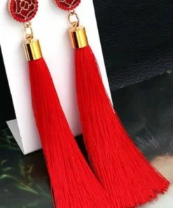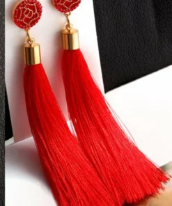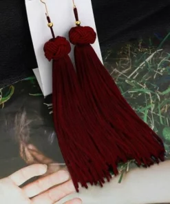 Crystal Long Drop Earrings for Women Red Cotton Silk Fabric Fringe Earrings 2021
