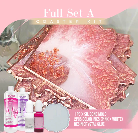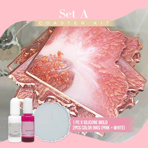 Full Set A – 2pcs Color Inks (Pink + White) + Mold + Resin Crystal Glue or