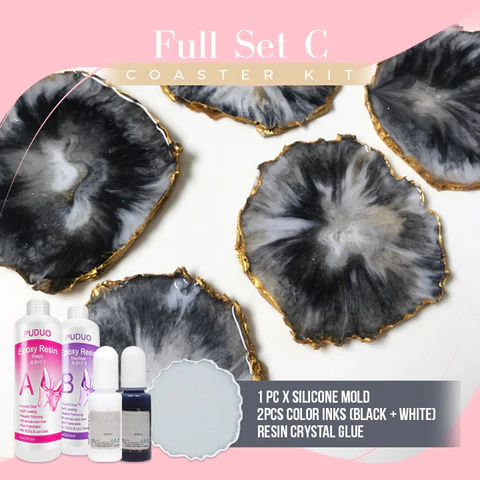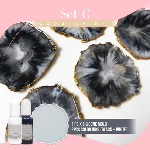 Full Set C – 2pcs Color Inks (Black + White) + Mold + Resin Crystal Glue
