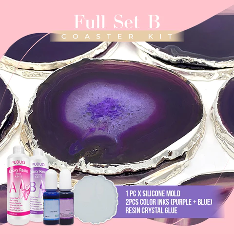 Full Set B – 2pcs Color Inks (Purple + Blue) + Mold + Resin Crystal Glue or