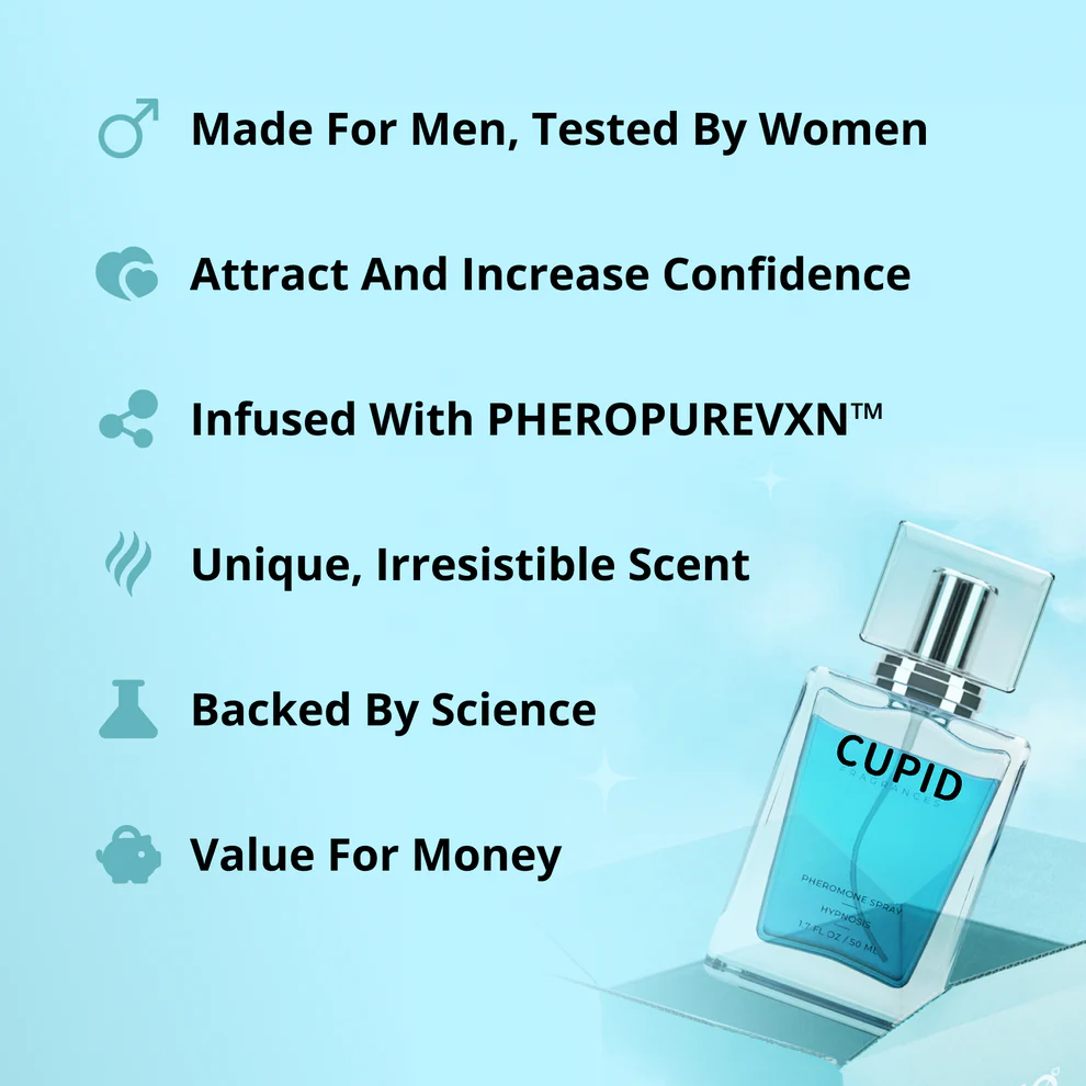 CUPID™ Toilette for Men is infused with the revolutionary CUPID™ Toilette, boasting an unparalleled blend of potent pheromones that influence moods and enrich interpersonal connections. By stimulating your natural pheromone production, it fosters affection, boosts confidence, and enhances romantic relationships. Crafted with intuitive expertise, our CUPID™ Toilette for Men presents irresistible fragrances that remain discreet, captivating, and delicately infused with human-compatible pheromones.