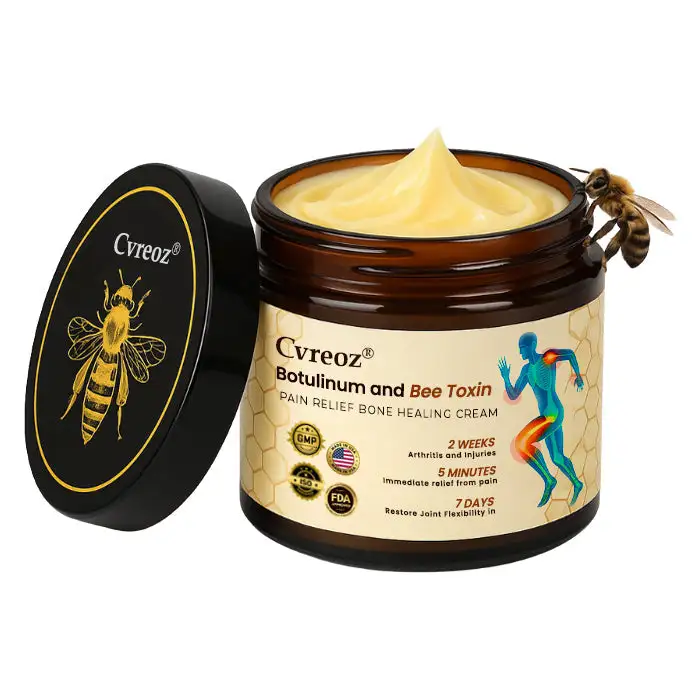 Cvreoz® Pain Relief Bone Healing Cream lies a powerful fusion of Botulinum Peptide and Bee Toxin—two clinically recognized compounds known for their remarkable effects on pain, inflammation, and tissue regeneration. Botulinum peptide works by calming overactive nerve endings that trigger chronic pain signals, allowing muscles and joints to relax and heal naturally. Unlike typical numbing agents, it doesn’t just mask discomfort—it targets the root cause of nerve-related pain, reducing spasms and inflammation while supporting long-term relief.