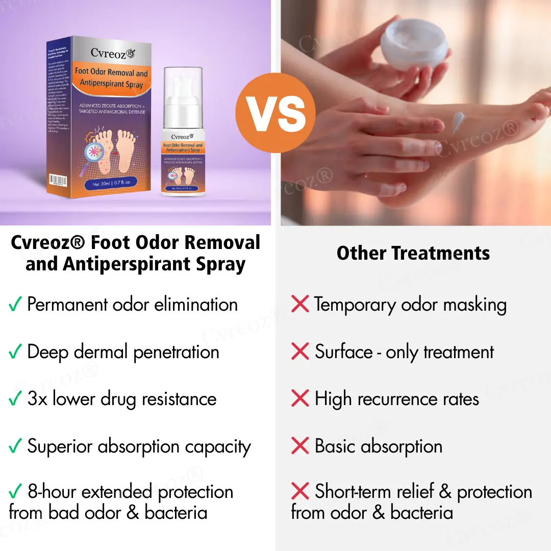 Leading podiatrists and dermatologists consistently recommend Cvreoz® Foot Odor Removal and Antiperspirant Spray as their preferred treatment for comprehensive foot health, recognizing its unique ability to target athlete’s foot, excessive sweating, and persistent odor through evidence-based mechanisms. Its dual-action formula combines powerful antifungal efficacy with advanced moisture control, offering a reliable solution for patients unresponsive to conventional treatments. Clinical outcomes show superior symptom relief and patient satisfaction, with healthcare specialists valuing its gentle yet effective formulation that reduces irritation while eliminating fungi, controlling hyperhidrosis, and neutralizing odor-causing bacteria. Cvreoz® has earned the medical community’s trust for its proven ability to break the cycle of reinfection and odor recurrence, significantly improving long-term treatment compliance and overall quality of life.
