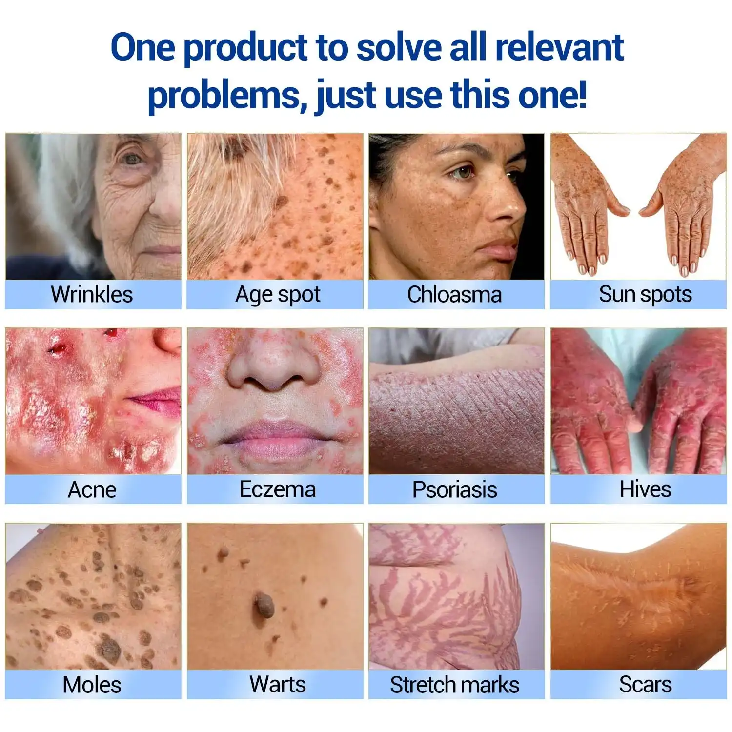 Chronic UV damage results in age spots, sun spots, and chloasma (melasma), creating uneven pigmentation. With age, the skin’s recovery ability diminishes, making these changes more permanent. Acne, triggered by clogged pores, bacteria, and hormonal shifts, often leaves long-lasting scars that can damage self-esteem.