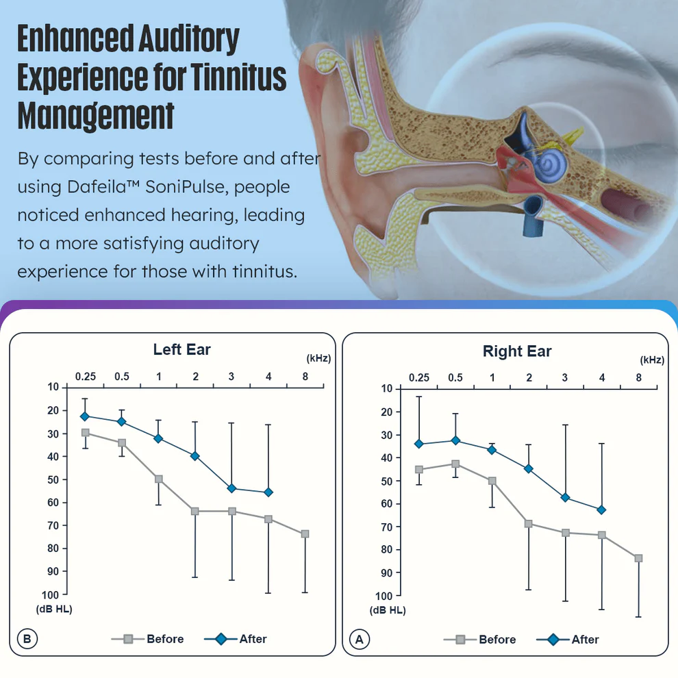 Immerse yourself in tranquility with Dafeila™ SoniPulse, the cutting-edge solution for soothing tinnitus. Elevate your auditory experience and reclaim quiet moments effortlessly, as peaceful as a gentle pulse.