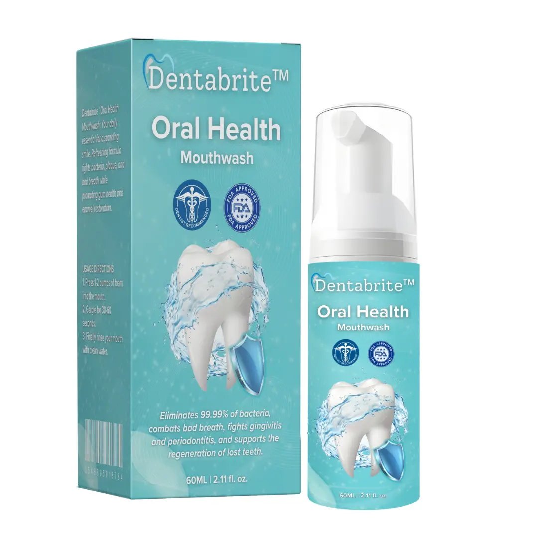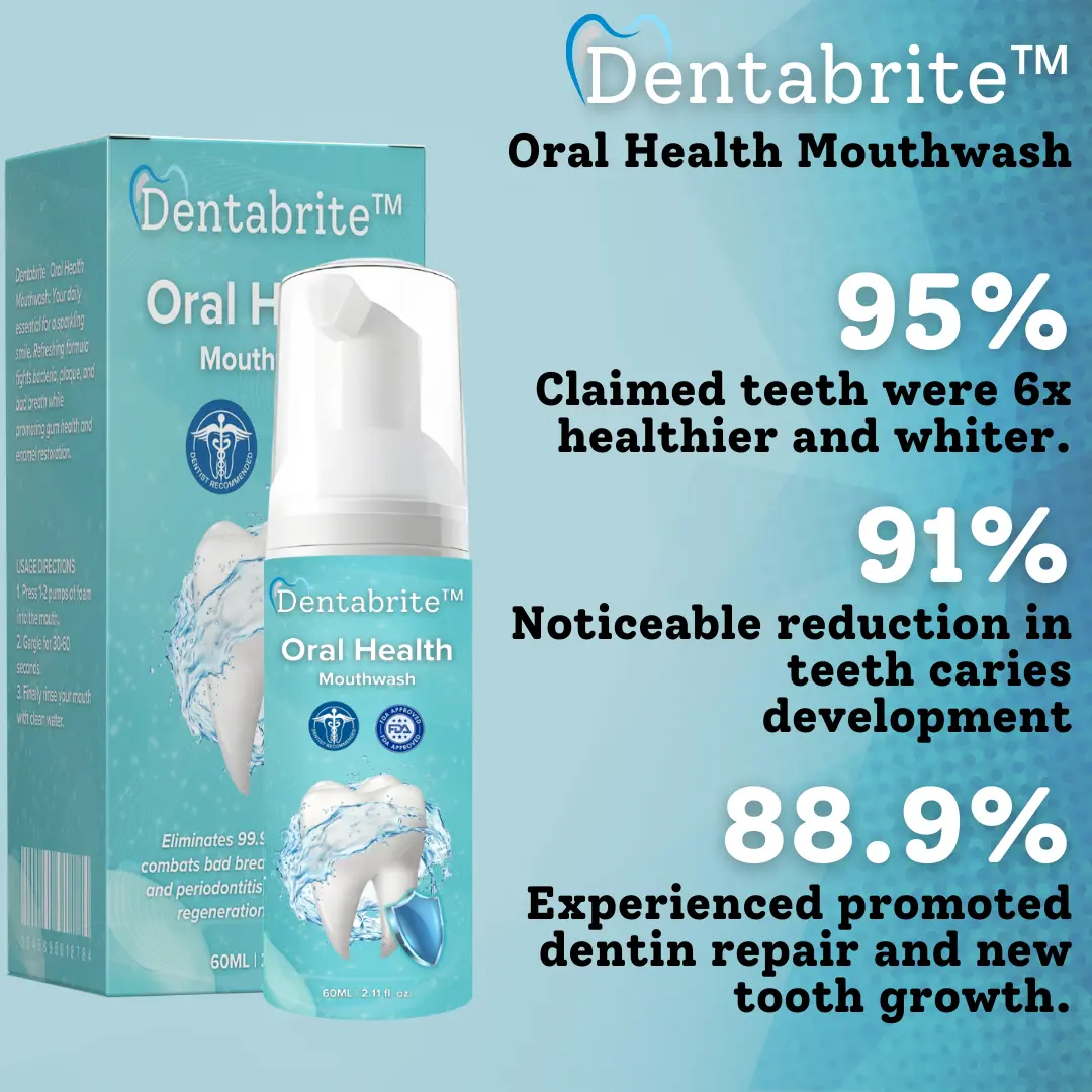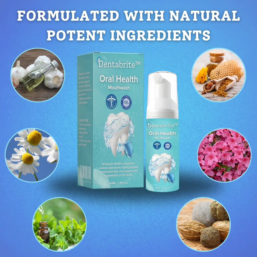 Dentabrite™ Oral Health Mouthwash has the power to eradicate 99.99% of bacteria, combat bad breath, eradicate tooth plaque and tartar, address gingivitis and periodontitis, alleviate toothaches, prevent and remedy cavities, renew tooth enamel, stimulate dentin repair, and aid in the regeneration of lost teeth.