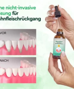 Diese fortschrittlichen Tropfen wurden speziell zur Behandlung von Zahnfleischschwund und Zahnfleischrückgang entwickelt und bieten einen ganzheitlichen Ansatz zur Wiederherstellung der Zahnfleischgesundheit. Mit einer einzigartigen Mischung aus natürlichen Inhaltsstoffen und wissenschaftlich erprobten Verbindungen bietet DentiZen™ eine beruhigende und verjüngende Erfahrung für Ihr Zahnfleisch. Verabschieden Sie sich von Beschwerden und freuen Sie sich auf ein gesünderes, strahlenderes Lächeln mit DentiZen™ Zahnfleisch-Wachstumstropfen.