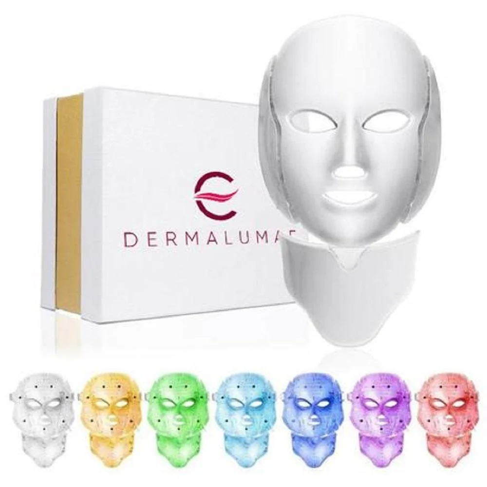 DermaLume™ Face Mask With Neck Piece Has Seven Different Built-In Color LED Lights That You Can Conveniently Switch Through, Each Color Treating The Skin In Different Aspects.