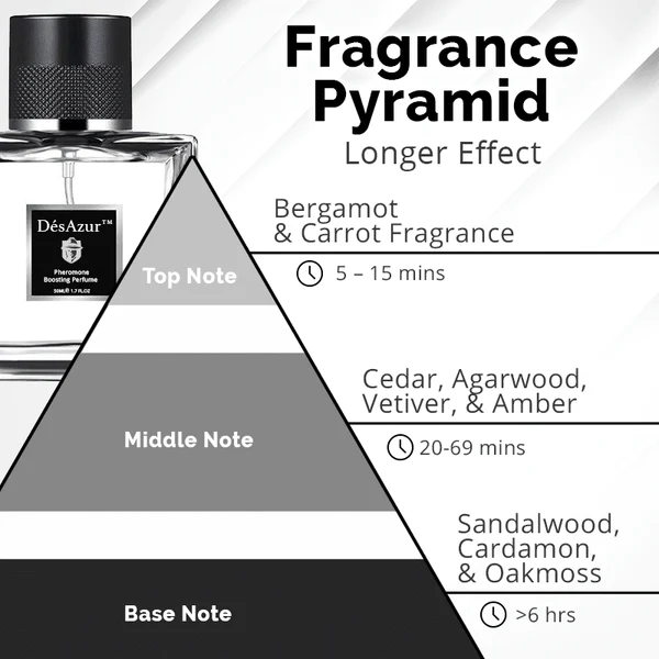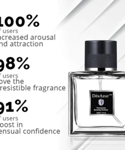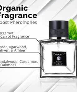 DésAzur™ Pheromone Boosting Perfume enhances the production of natural pheromones in men, which are vital chemicals that our bodies naturally produce and excrete through sweat and other bodily fluids. These pheromones play a crucial role in human attraction and have been scientifically proven to affect the behavior of the opposite sex.