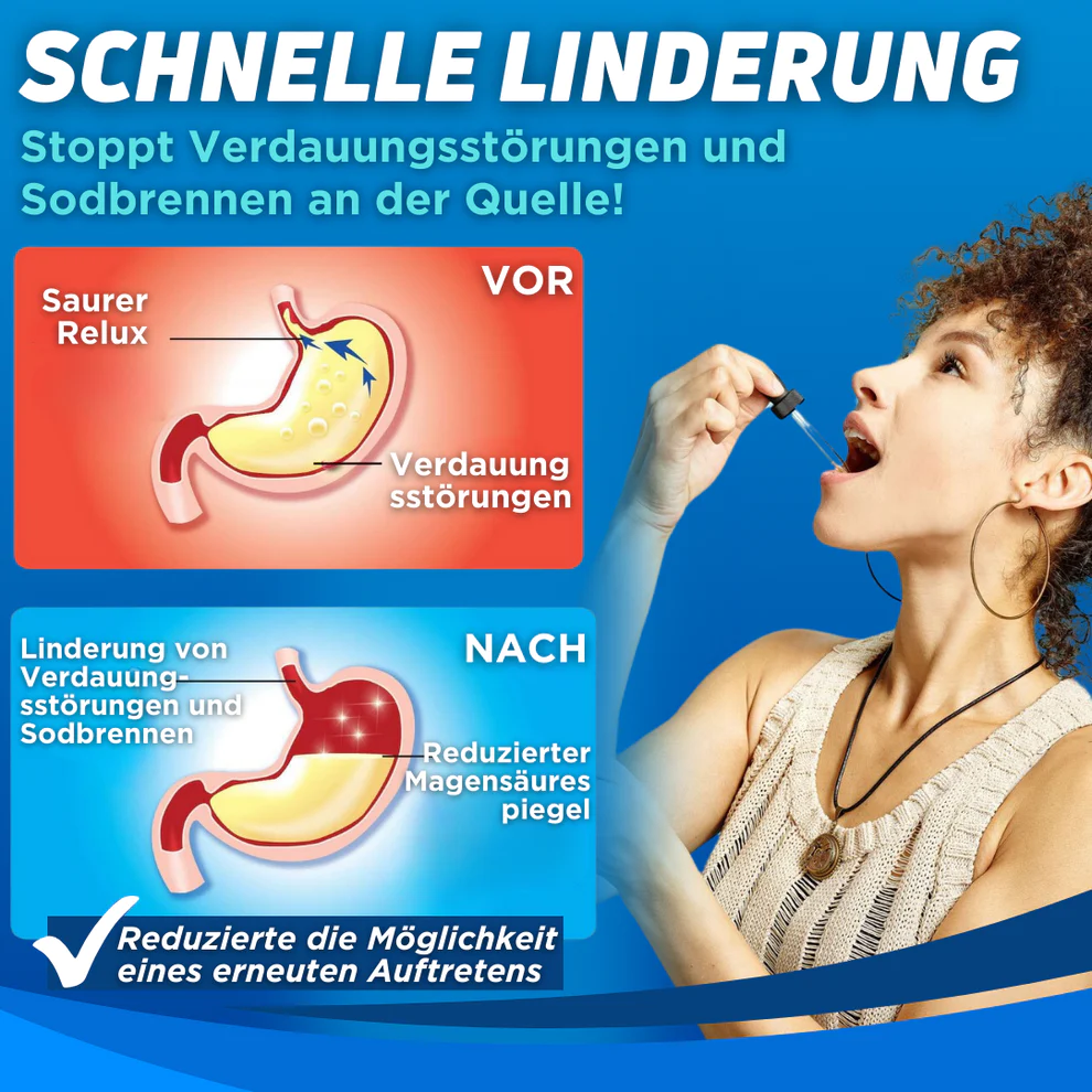 - Schnelle Linderung von Verdauungsstörungen wie Sodbrennen, sauren Verdauungsstörungen, Blähungen und Magenbeschwerden.