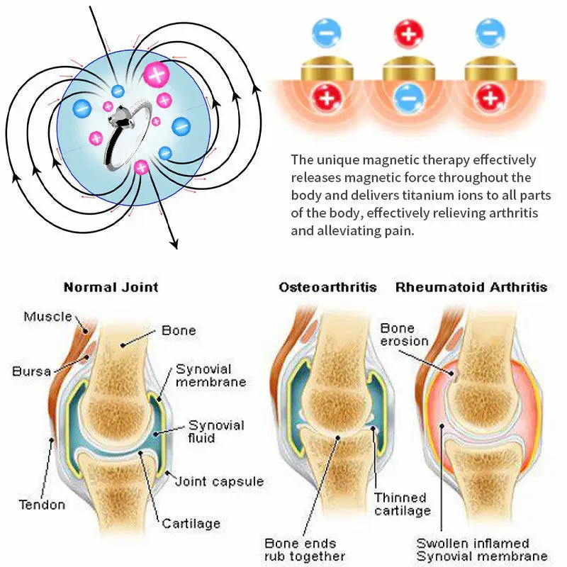 High-quality natural magnets are the main material of the ring. which can affect the human body’s magnetic field. promote lymphatic circulation. reduce swelling. help the body detoxify. and speed up metabolism. High-purity titanium metal is used as an auxiliary material to release titanium ions. which effectively helps relieve joint pain. promote blood circulation. and eliminate inflammation. We also innovatively add metal germanium to further enhance the effect of the ring. Germanium can improve the overall body. prevent aging. prevent cancer. regulate blood pressure. regulate chronic diseases such as the autonomic nervous system.
