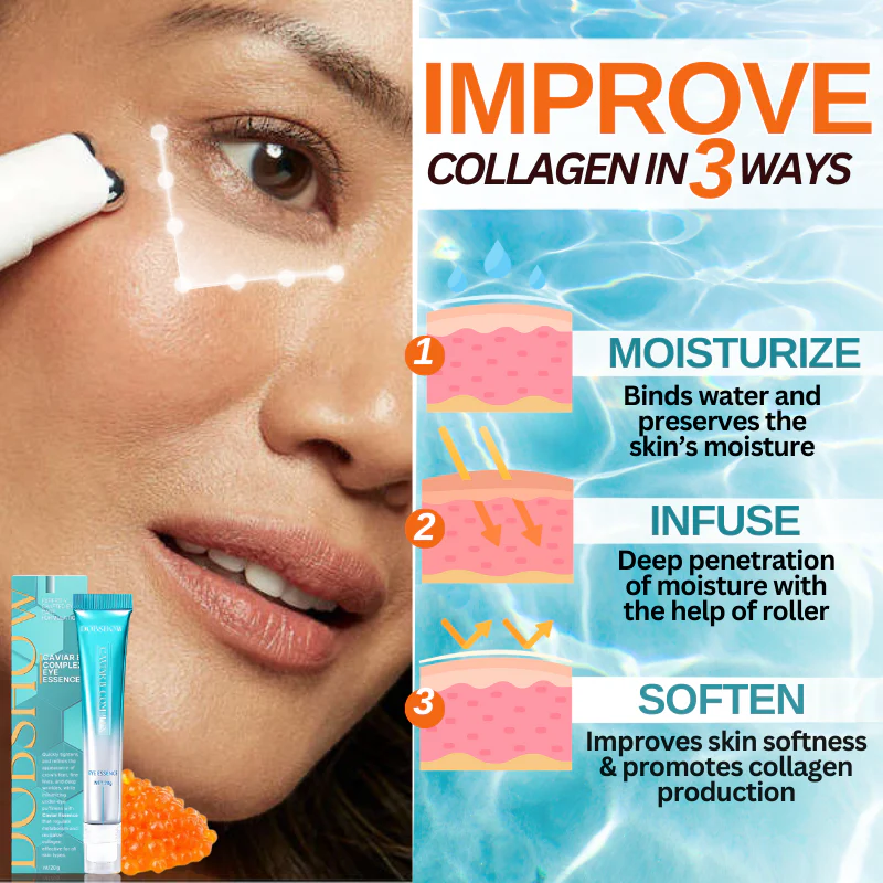 Dobshow Caviar B-Complex Eye Essence is a highly effective solution for combating signs of aging in the delicate skin around the eyes. By promoting collagen synthesis and accelerating the skin’s natural cell turnover, it results in noticeably firmer skin and a significant reduction in fine lines, wrinkles, dullness, dryness, and enlarged pores. With regular use, the skin appears more rejuvenated, vibrant, and refreshed, restoring a youthful glow that visibly defies age.