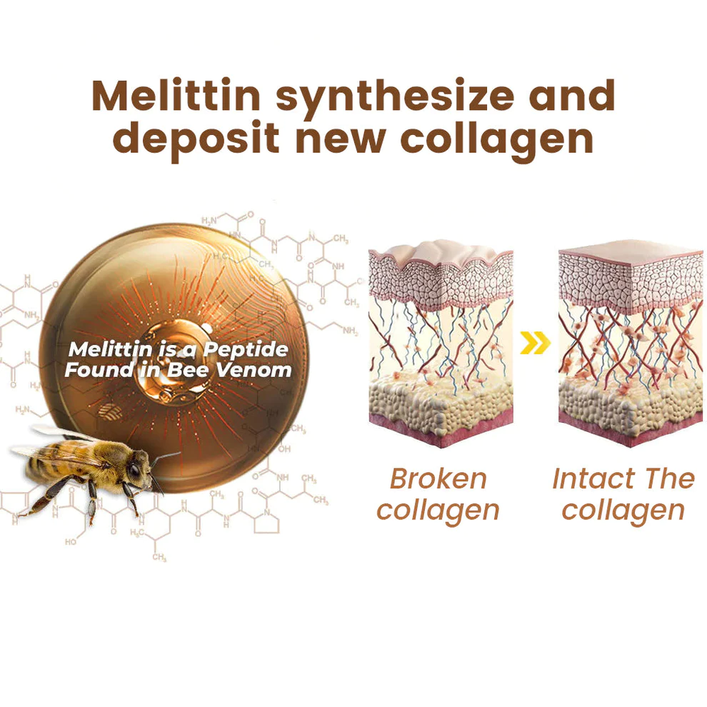 Bee venom is believed to stimulate collagen synthesis in the skin. The fibroblasts activated by melittin help synthesize and store new collagen in the skin. This increased collagen production can contribute to skin firmness and elasticity and reduce the appearance of fine lines and wrinkles.