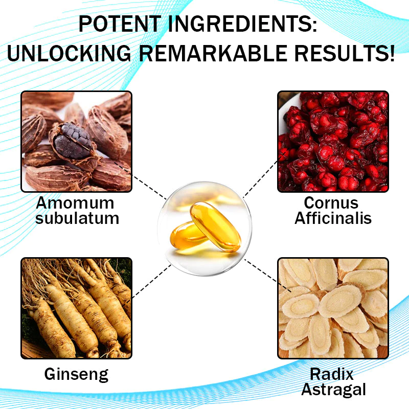 - Key Ingredients: Morinda afficinalis, Fructus Toosendan, Amomum subulatum, Cornus afficinalis, Radix Astragal, Ginseng, Angelica