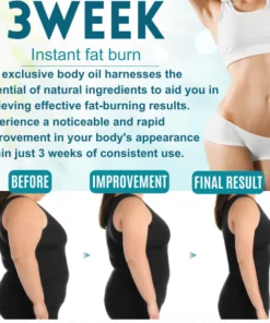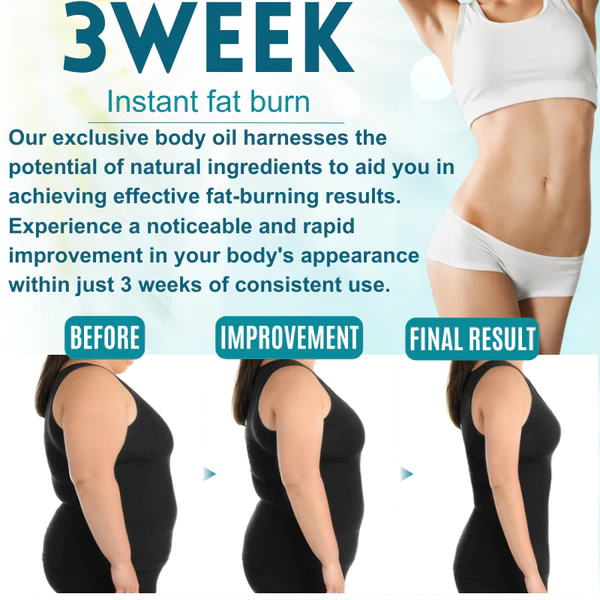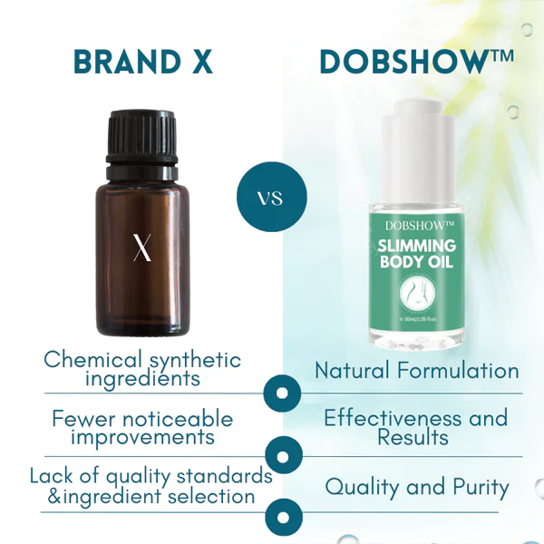 Experience the incredible benefits of using Dobshow™ Slimming Body Oil. Effortlessly shed excess fat with its potent natural formula, targeting stubborn areas like the abdomen, waist, hips, and thighs to achieve a more sculpted look. Boost your confidence as you work towards your desired body shape, all through a quick and simple application process. Enjoy the bonus of smoother skin texture and improved elasticity. Harness the power of natural ingredients for effective fat burning, and start seeing visible results in just 3 weeks of consistent use! Say goodbye to artificial methods and embrace the natural path to achieve your body goals!