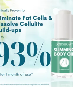 Introducing Dobshow™ Slimming Body Oil, a revolutionary breakthrough thoughtfully formulated with a fusion of powerful natural ingredients. This specially crafted formula is dedicated to addressing stubborn fat cells across various parts of the body, offering distinct benefits to women. As it works, it harnesses the power of thermal heat to promote improved blood circulation, kickstarting the process of fat reduction by targeting stored fat cells. Simultaneously, it accentuates feminine curves and contours, creating a holistic approach to body sculpting.