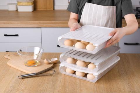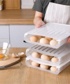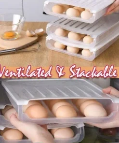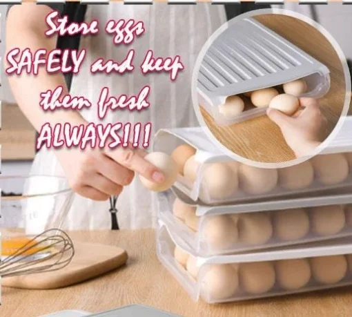Great egg storage solution. Nifty little box. Keeps the eggs easily accessible, yet protects them at the same time. It allows to see how many eggs are left. As the eggs get used up and the space get freed up, I use the channels for other small items. Very useful and we all really like it!