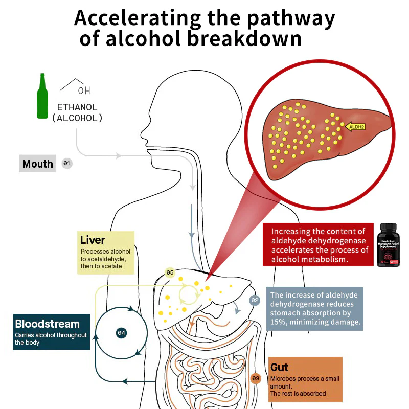 To completely change this situation, the University of Delaware Medical Center has collaborated with EASYRX Medical Group’s North Carolina Research Center, bringing together medical experts to jointly develop a groundbreaking product. Its mission? To supplement aldehyde dehydrogenase, speeding up the process of alcohol metabolism into acetic acid for a quick hangover relief.