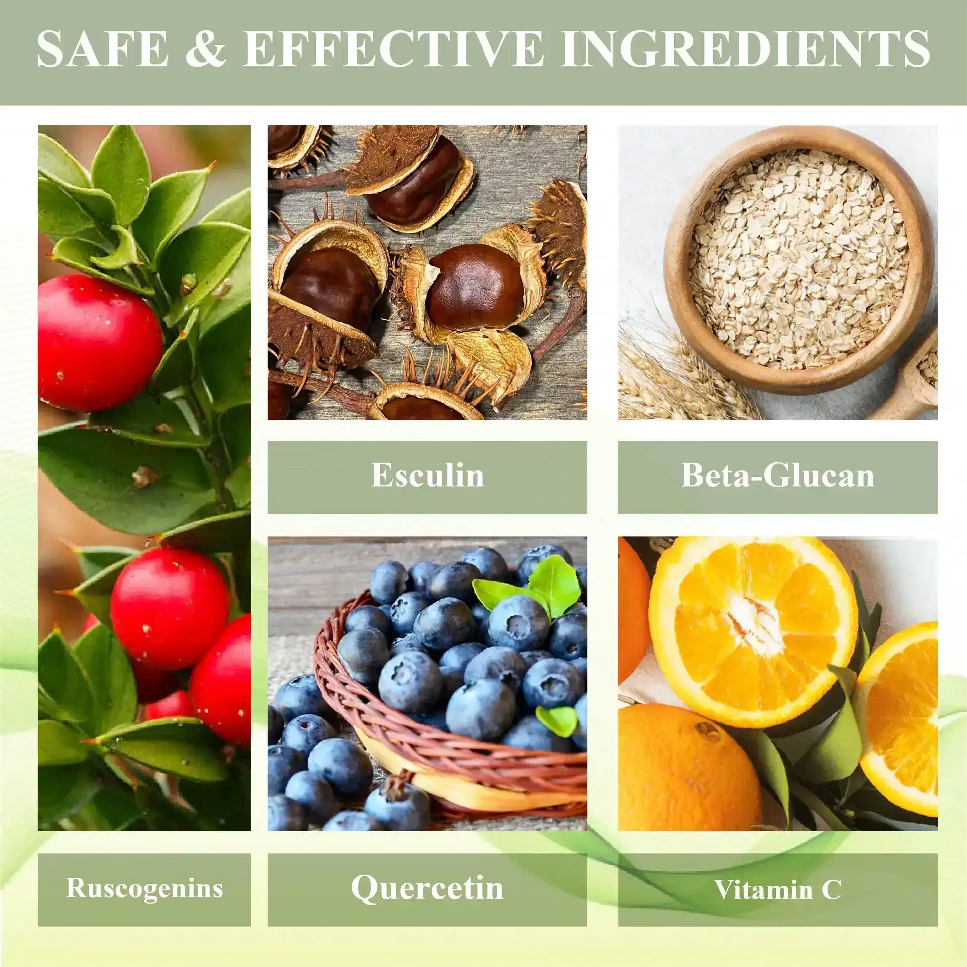 - Reinforces blood vessel structure to prevent fluid leakage and reduce swelling.