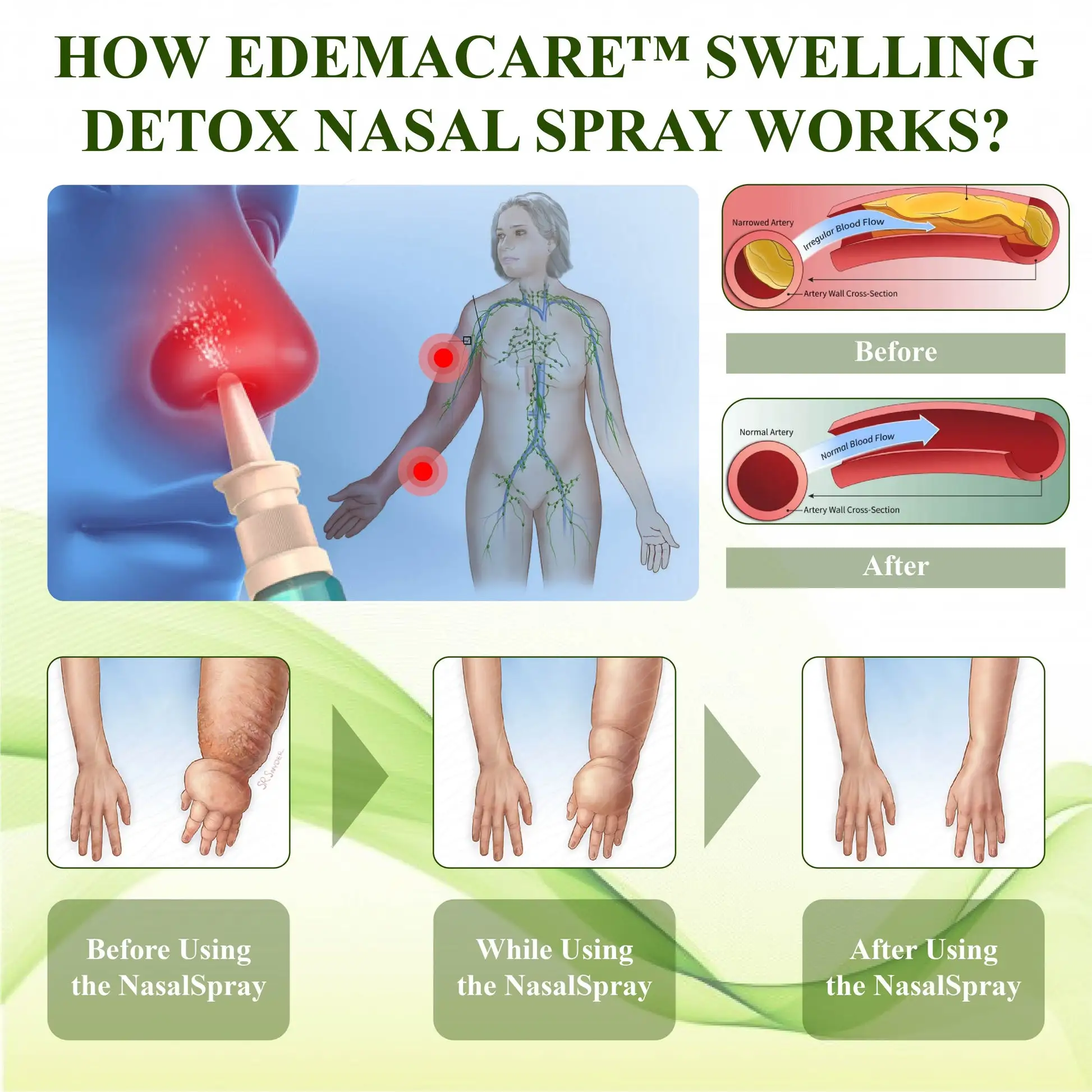 At EdemaCare™, experience fast relief and improved circulation for reduced swelling and discomfort. Our EdemaCare™ SwellingDetox Nasal Spray helps reduce swelling and promotes healthy fluid balance. It supports improved circulation and lymphatic drainage providing fast relief from discomfort and fluid buildup.