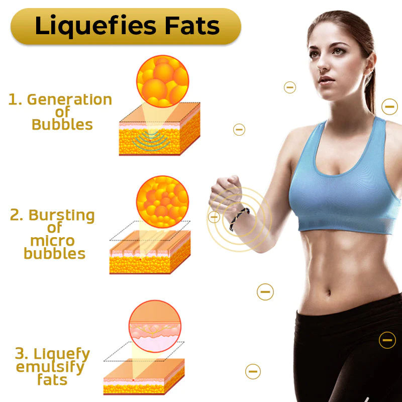 Tiny bubbles produced by the TitanPro Lymphatic Relief Wristband interact with fat cells. The energy of the titanium is then absorbed by the fat cells, causing them to expand to their maximum size before crushing and bursting.