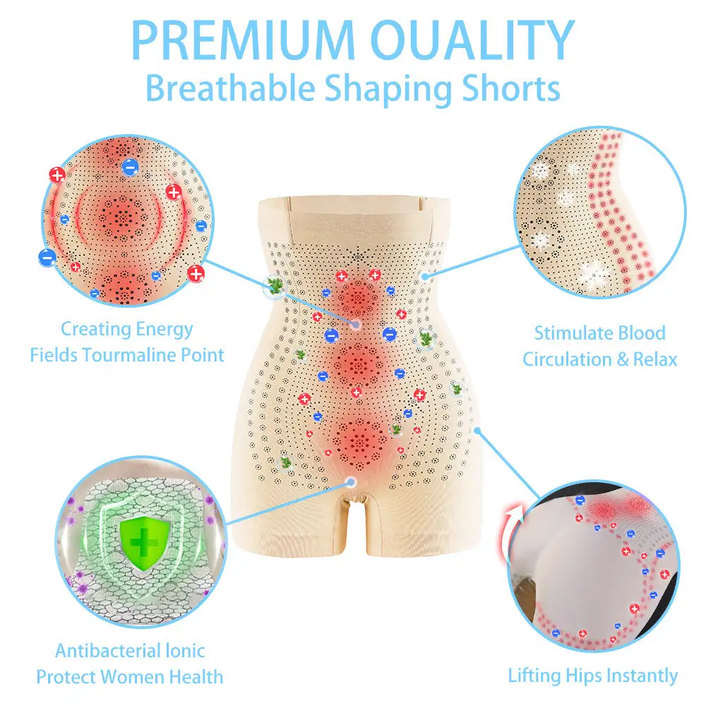 The tourmaline-infused shorts contain natural minerals that stimulate the muscles in the tummy and hips through acupressure techniques, resulting in improved blood circulation and overall body relaxation. The shorts are meticulously designed to provide a sleek and contoured appearance from any angle. They are skin-friendly, breathable, and exceptionally lightweight, weighing only a fraction of regular shorts while delivering ten times the shaping effect. With these shorts, you can achieve the perfect body curve overnight!