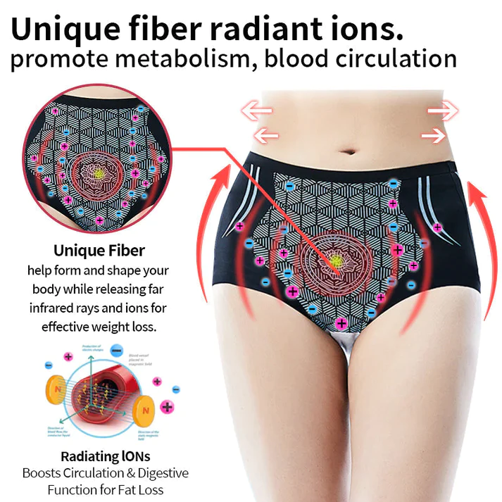 EXPECTSKY™ Ice Silk Fiber Ion Repair Body Shaping Underwear activates 800 reflex points on the abdomen. Made with high-tech materials infused with tourmaline, it emits far-infrared rays and negative ions. The underwear independently generates energy using far-infrared therapy, ion therapy, and mugwort therapy, without the need for external power sources or electricity.The underwear promotes blood circulation, boosts metabolism, burns calories, and lifts and tightens the buttocks. It also helps relieve menstrual pain and prevent itching in the buttocks and private areas.