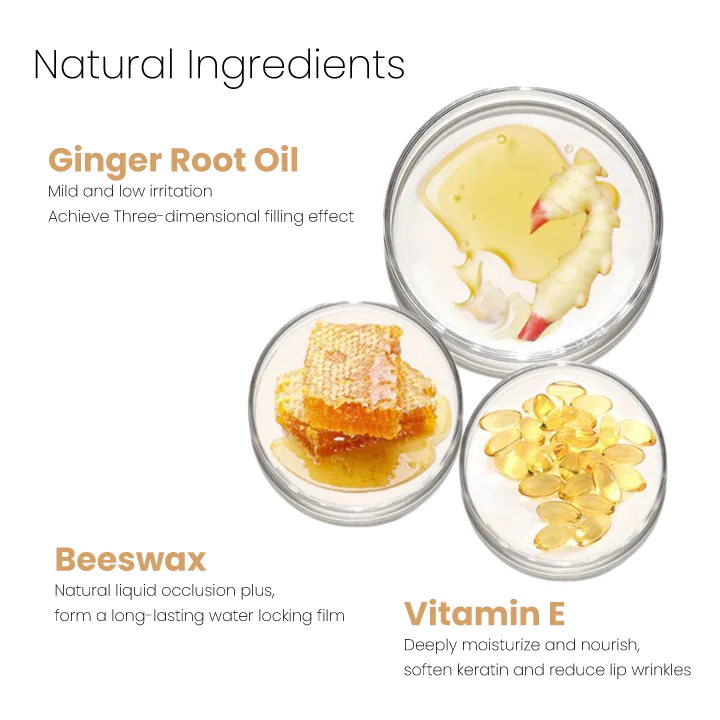 3 Key Ingredient boosting lip cell collagen: Ginger Extract, Mint, Vitamin E